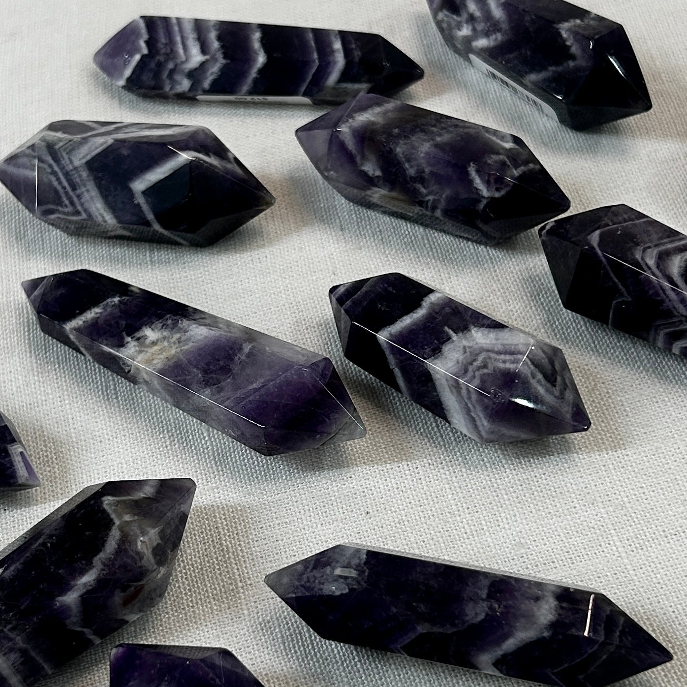 Chevron Amethyst is a unique and powerful variation of Amethyst, known for its distinctive banded patterns of purple and white. This crystal radiates a beautiful blend of calming and uplifting energy, making it an essential companion for anyone seeking clarity, healing, and spiritual growth .